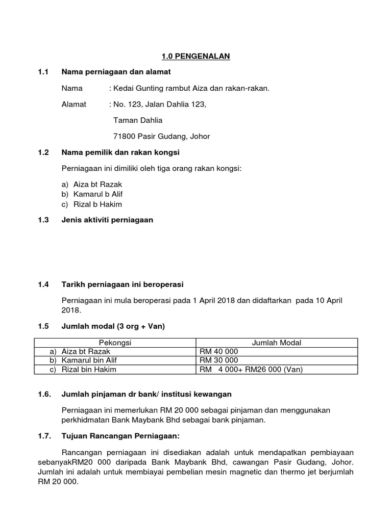 No 10 Ground Floor Jalan. Ringkasan Eksekutif Kedai Gunting Rambut Milikan Tunggal Contoh Kerja Kursus Perniagaan Tingkatan 4. Kerja Kursus Perniagaan Tingkatan 5 - Contoh Susun Atur Rancangan.